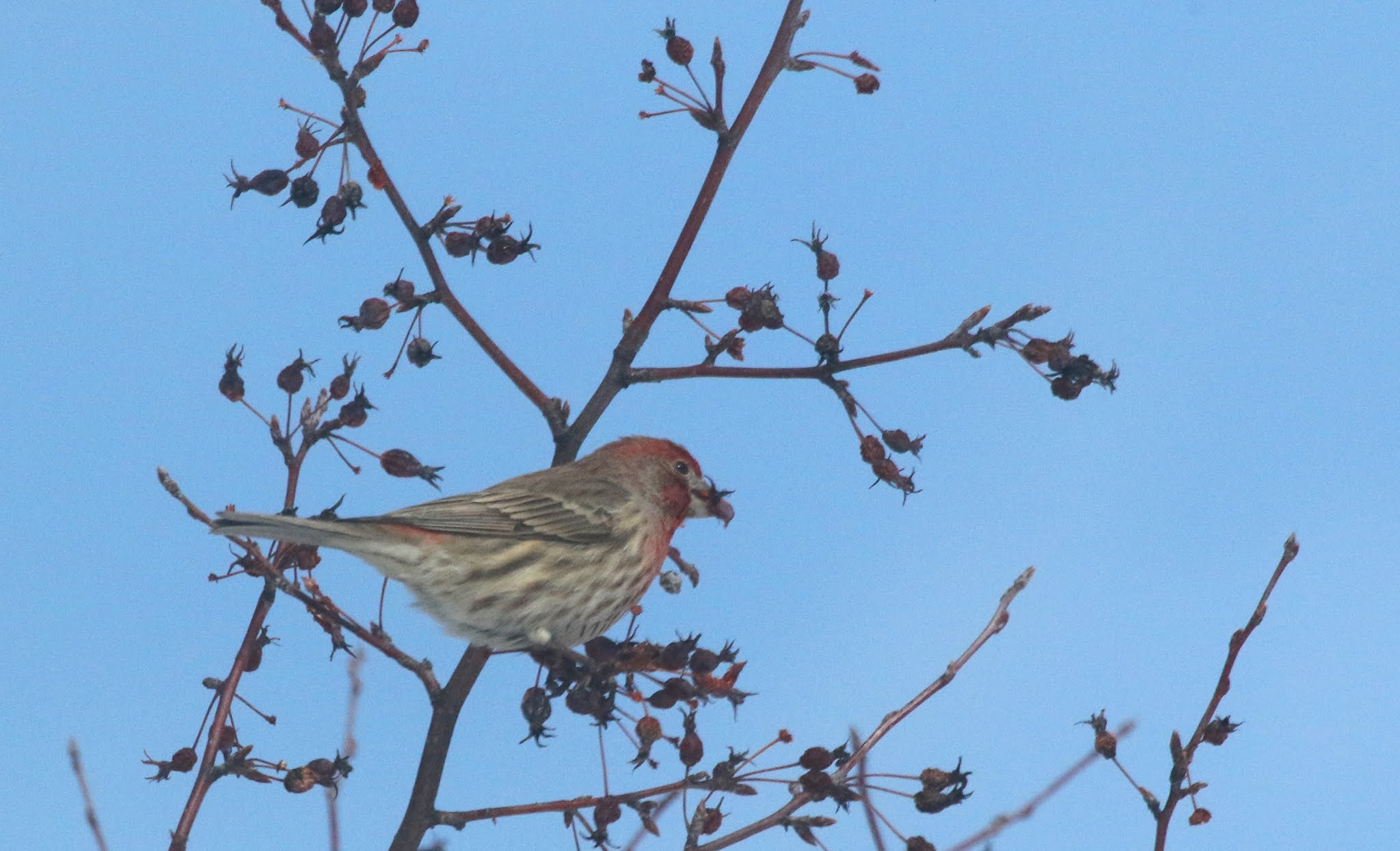 -Heard the lunatic melody of a House Finch singing in the distance again