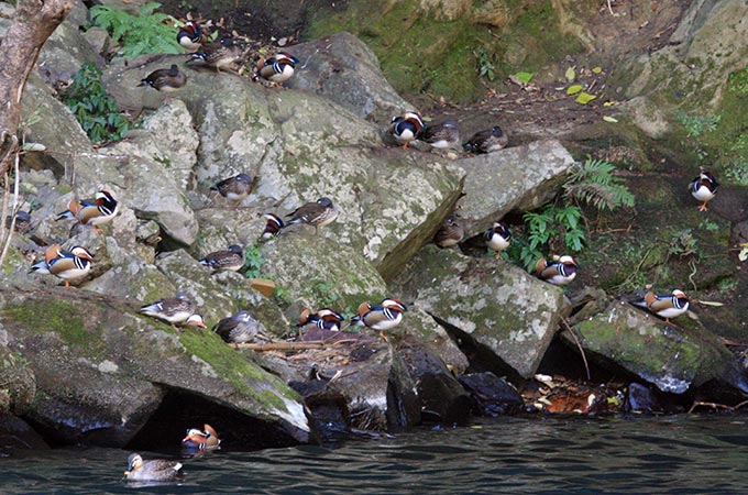 Cheonjiyeon Falls held some interesting species, such as a single Coot, several Gadwall and Common Teal, and at least 30 Mandarin Ducks on the rocks opposite the falls. Several Japanese Bush Warblers were spotted amongst some wet rocky scrub, loosely flocking with Japanese White-eyes. Spot-billed Ducks and Mallards were plentiful at both locations.